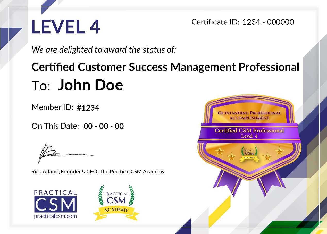Students who pass the exam are awarded the title of Certified Customer Success Management Professional or CCSMP and receive a digital certificate as proof of their achievement.