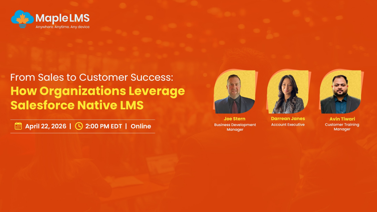 Join us for the Webinar on leveraging Salesforce Native LMS to bridge the gap between Sales & Customer Success.on April 22, 2026 at 2 PM EDT.